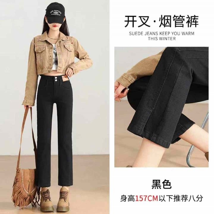 冬季新款加绒牛仔裤女宽松大码高腰直筒外穿阔腿老爹长裤子980件,独立包装...