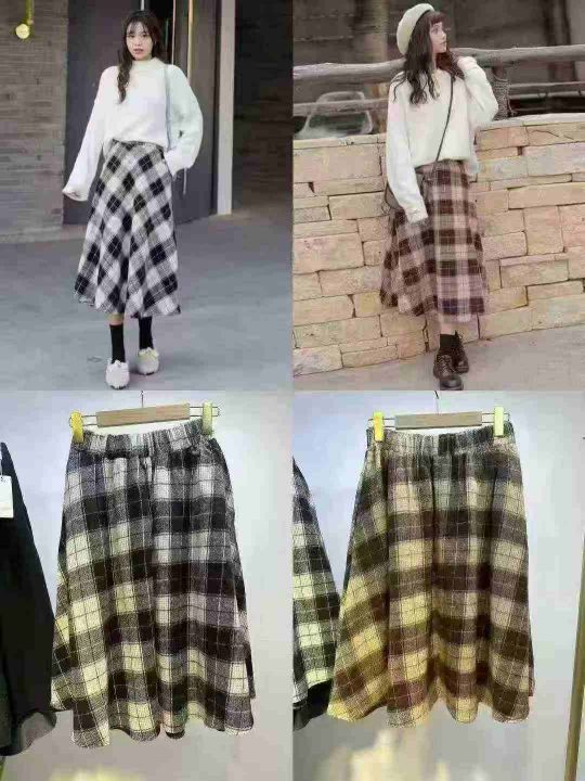 秋冬毛呢格子裙半身高腰a字裙半身长裙冬季裙,码数S-XXL,独立包装,货品干...
