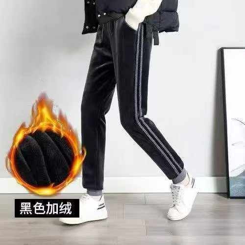 金丝绒运动裤女秋冬新款加绒加厚束脚哈伦裤侧条宽松时尚休闲卫裤,255件,...