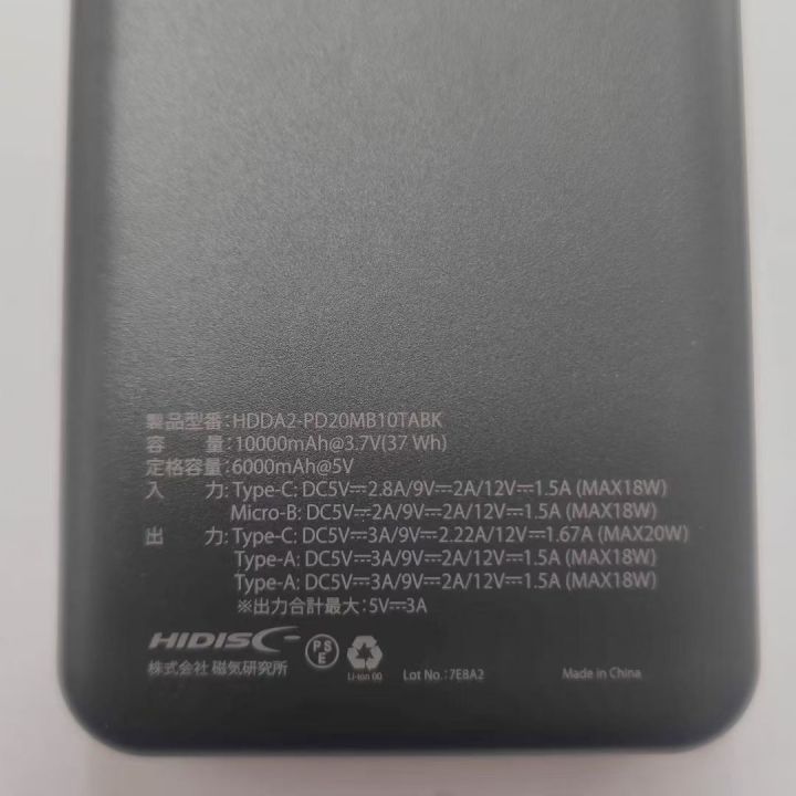 出口日本订单三元电芯足1万毫安充电宝!PD 22W ,USB 2...