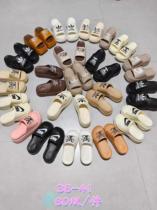 阿迪达斯,耐克,香奈尔,古驰,LV等国际大品牌厚底(底厚7~9CM)女拖少量到货。EVA高弹橡塑材质,码子36-41.一件60双,处理价[握手]