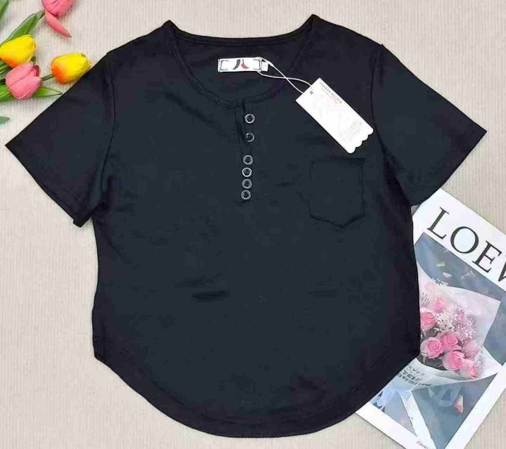 ☆5.8元,辣妹T,夏季韩版修身短袖排扣靓妹T恤,坑条罗纹面料,透气舒适,570件,1-4码,独立包装吊牌,全清5.8元,分货+0.5