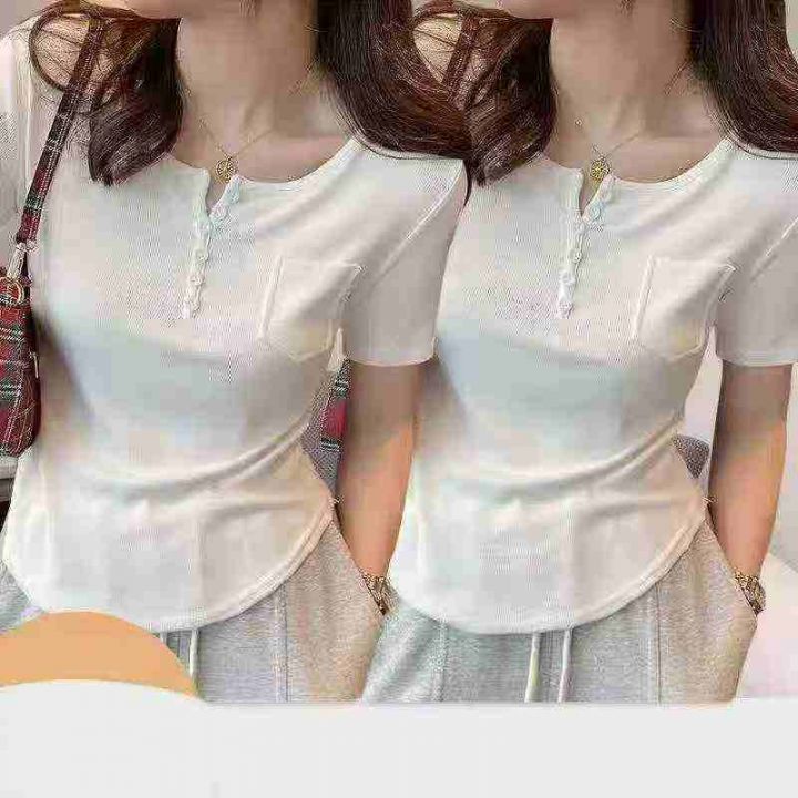 ☆5.8元,辣妹T,夏季韩版修身短袖排扣靓妹T恤,坑条...