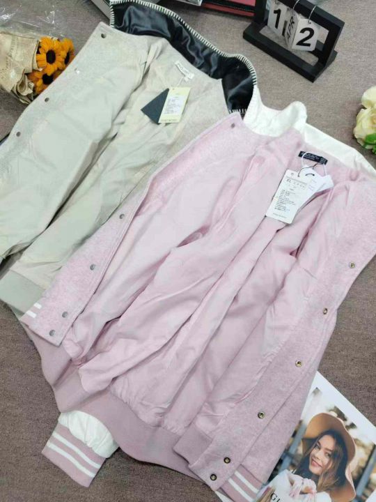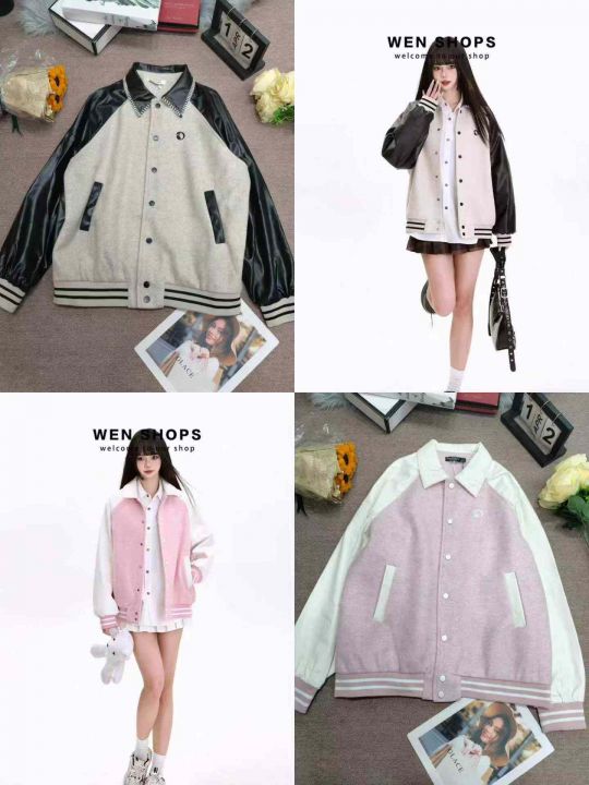 18.8清⭐,105件女款学院风甜酷刺绣宽松毛呢PU皮夹克棒球服,码数S M L XL,独立包装带吊牌
