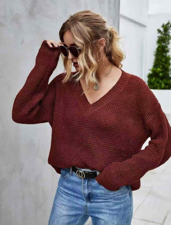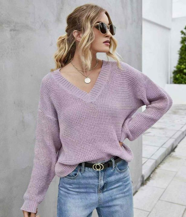 春季新款品牌外贸原单美式净版简约V领套头毛衣,独立...