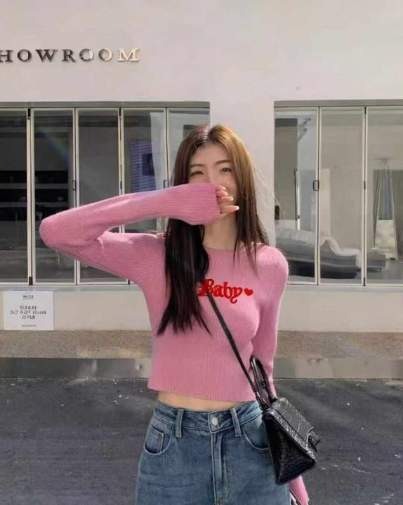 秋季新品纯欲甜辣短款字母刺绣针织长袖圆领套头毛衣,独立包装,均码面料柔软舒适弹力大,1700件左右,腾仓库,全清3.9元亏本处理!