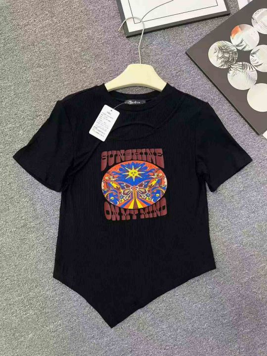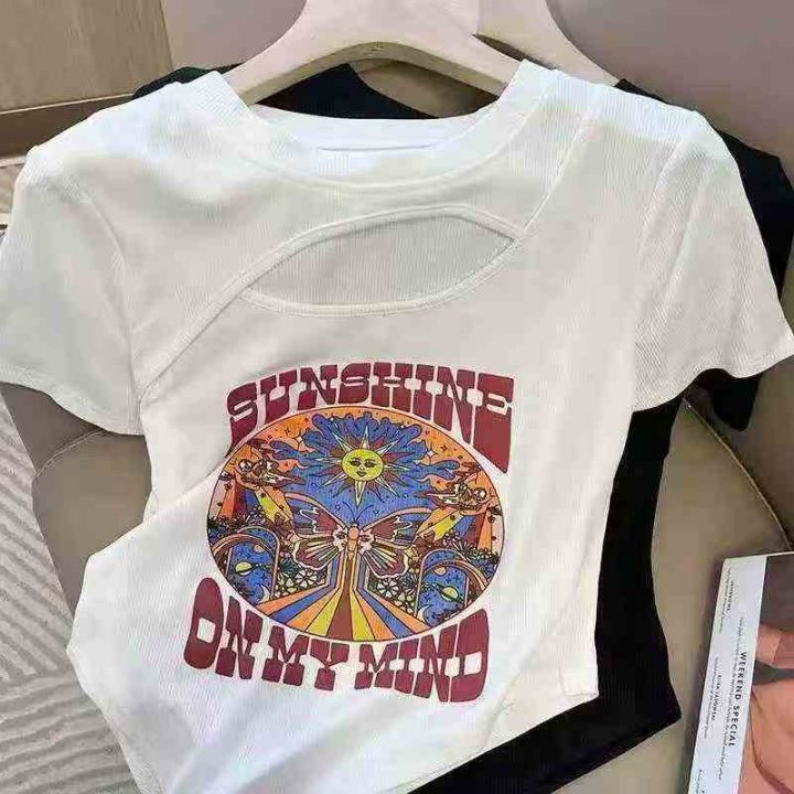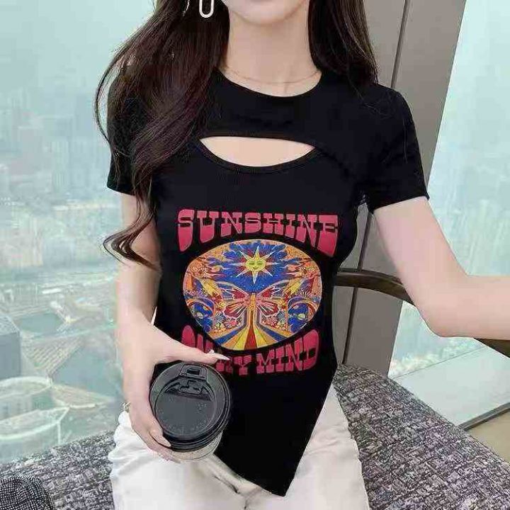☕️镂空上衣性感短袖t恤女显瘦修身洋气百搭辣妹T恤10...