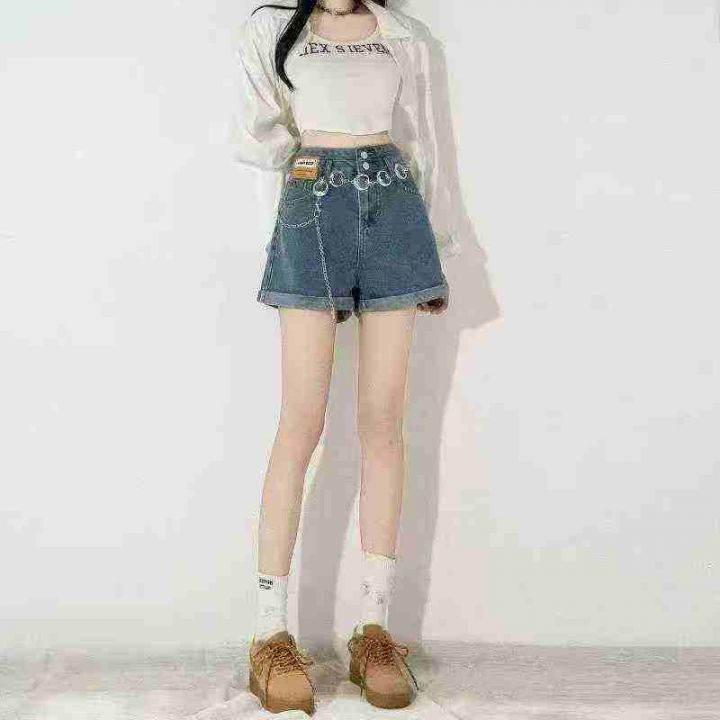 清8.8分货➕1黑色双扣高腰卷边牛仔短裤女2025夏季新款...