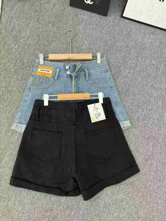 黑色双扣高腰卷边牛仔短裤女2025夏季新款宽松显瘦百搭阔腿热裤子,数量316,码数XS-XL,独立包装,货品干净,黑色为主。