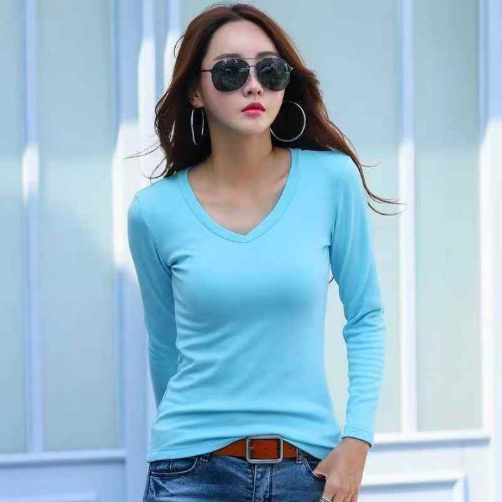 时尚简约V领打底衫修身长袖T恤上衣,数量 538 件,品...
