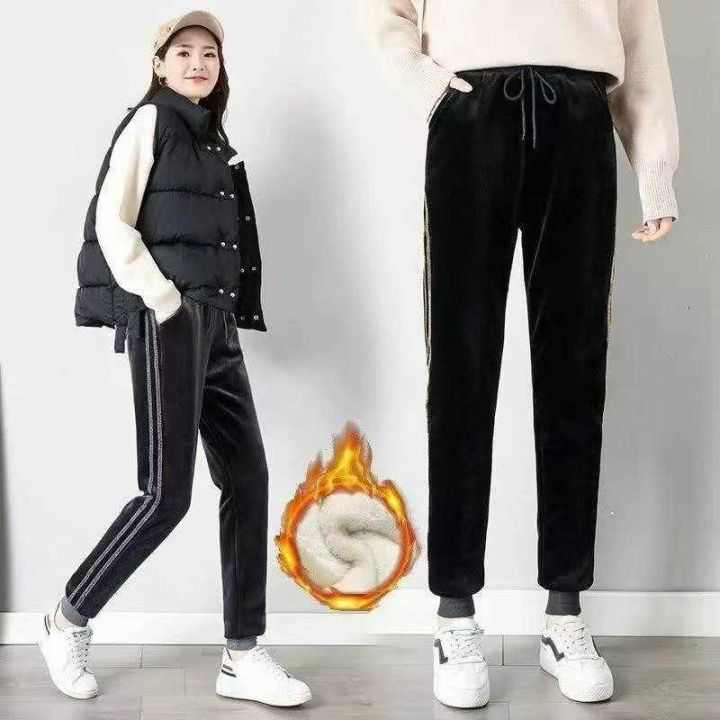 金丝绒运动裤女秋冬新款加绒加厚束脚哈伦裤侧条宽松时尚休闲卫裤,255件,码数l-4xl,独立包装,全清8.8元