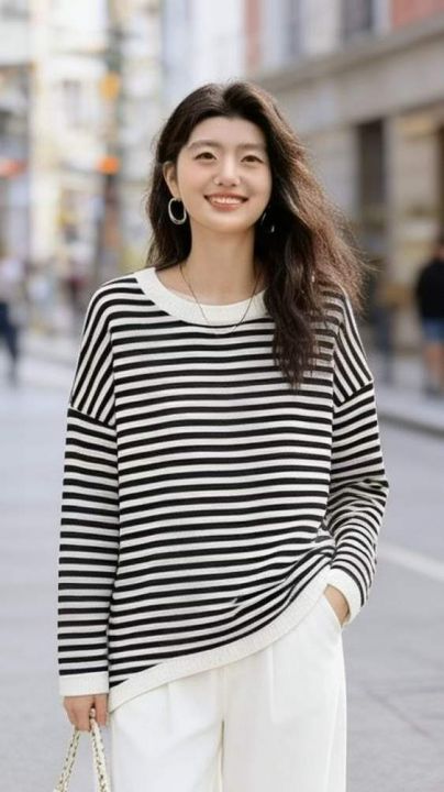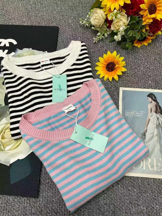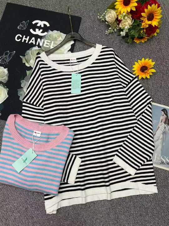 春季新款高品质品牌原单复古撞色条纹宽松百搭包芯纱套头毛衣,独立包装带吊牌,码数M--2XL码(黑白条纹为主)558件,全清7.9元超低价秒杀!分货加一!