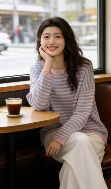 春季新款高品质品牌原单复古撞色条纹宽松百搭包芯纱套...
