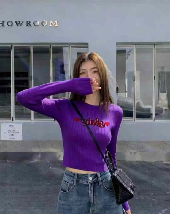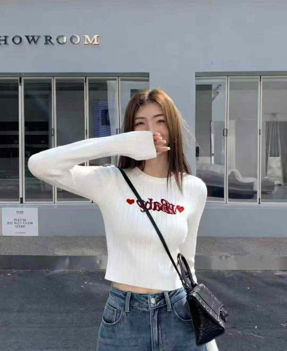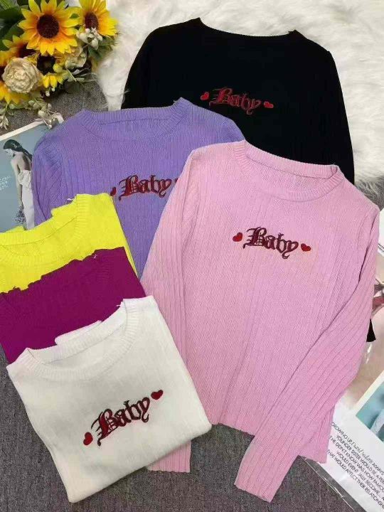 秋季新品纯欲甜辣短款字母刺绣针织长袖圆领套头毛衣,独立包装,均码面料柔软舒适弹力大,1700件左右,腾仓库,全清3.9元亏本处理!