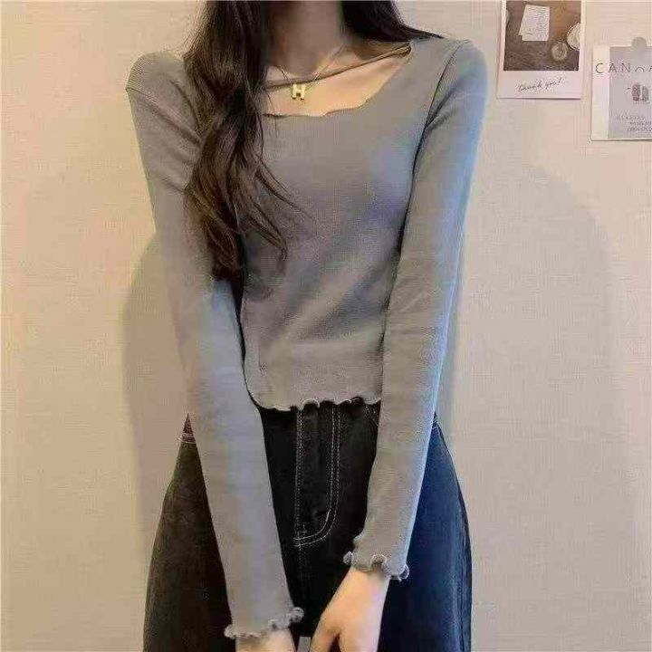 秋冬新款网红爆款方领木耳边开叉针织套头毛衣,独立包...