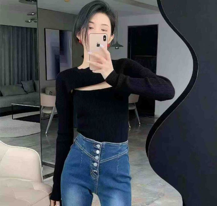 春季新款辣妹性感设计款针织毛衣2件套,独立包装,均...