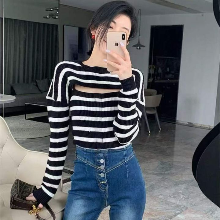 春季新款辣妹性感设计款针织毛衣2件套,独立包装,均...