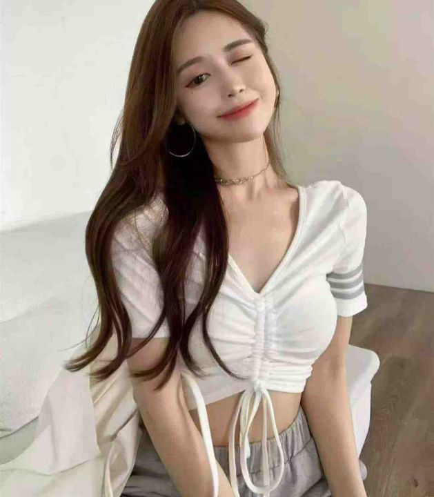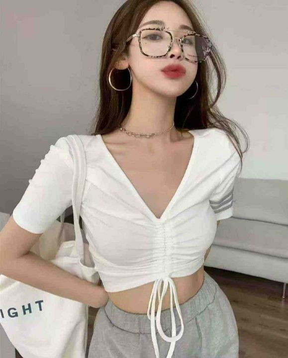 夏季新款纯欲风辣妹v领设计感抽绳小心机针织短袖小衫,独立包装,均码面料柔软舒适弹力大,365件,全清5.9元超低价秒杀!分货加一!
