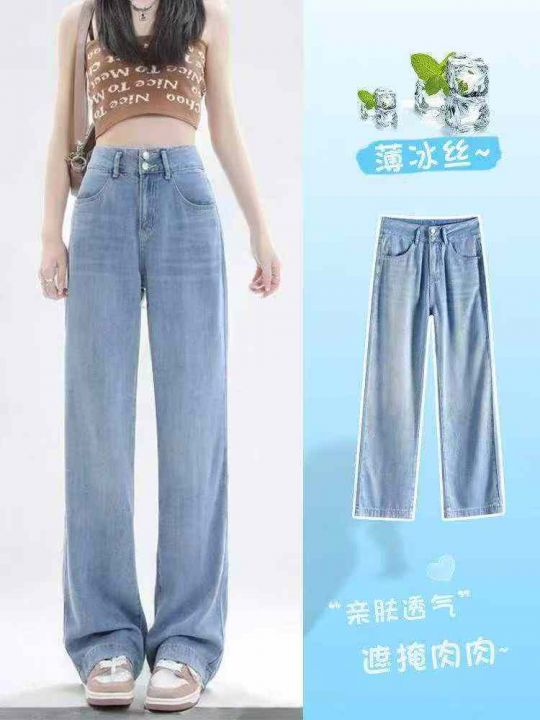 春季新款浅色天丝高腰垂感宽松直筒阔牛仔裤,独立包装带吊牌,码数S-XL码,...