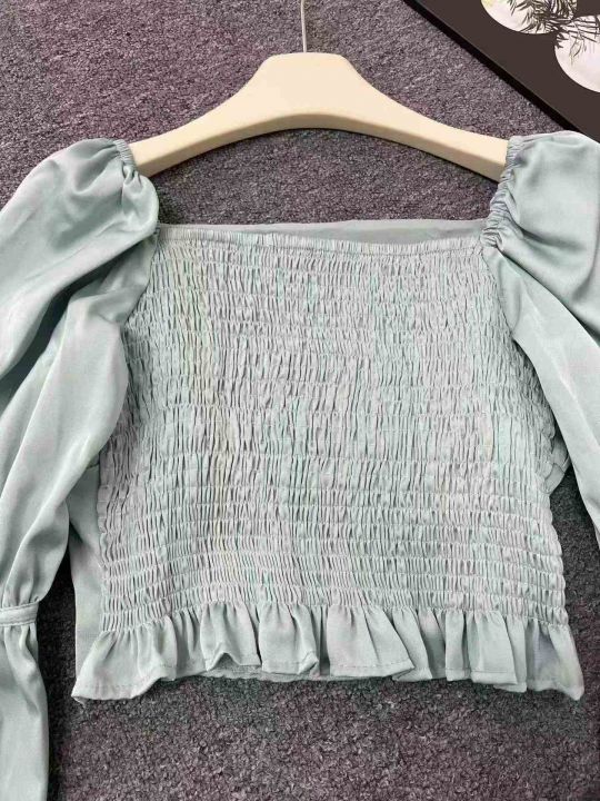 ☕️夏季蓝色衬衫长袖方领法式气质雪纺小衫宽松短款洋气独特别致上衣122件全清7.8元,均码 ,图片单色,正品独立包装[庆祝][庆祝][庆祝]