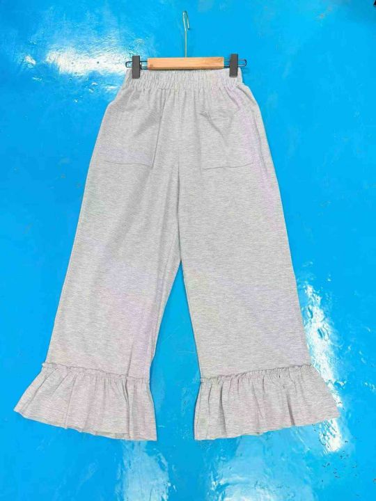 温柔风双层花边微喇叭休闲裤女春秋垂感拖地长裤,独立包装,纯棉布料,S -XL码,80件左右。全清4.8