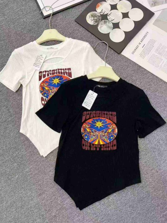 ☕️镂空上衣性感短袖t恤女显瘦修身洋气百搭辣妹T恤10...