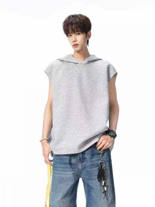 3.9清电商仓回收156件美式坎肩帅哥斜纹连帽背心无袖T恤,码数S-2XL。内里斜...