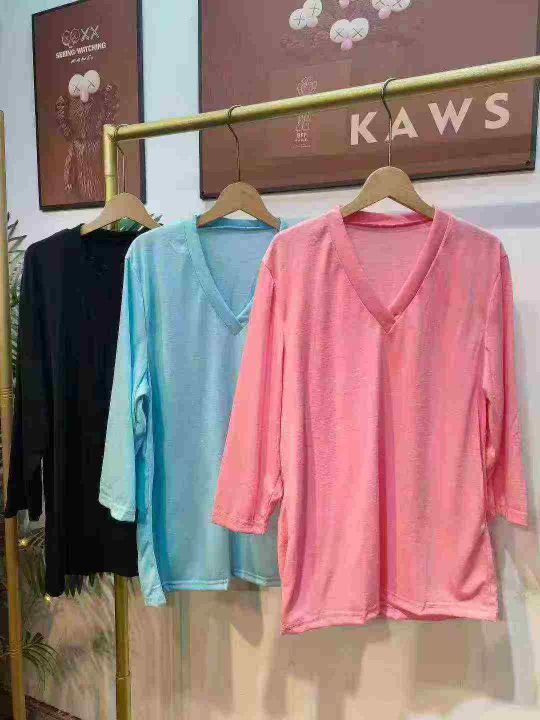 270件春夏季V领中袖棉质T恤上衣 单款三色,码数S-XXL码 独立包装。