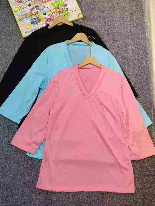 全清3.8270件春夏季V领中袖棉质T恤上衣 单款三色,...
