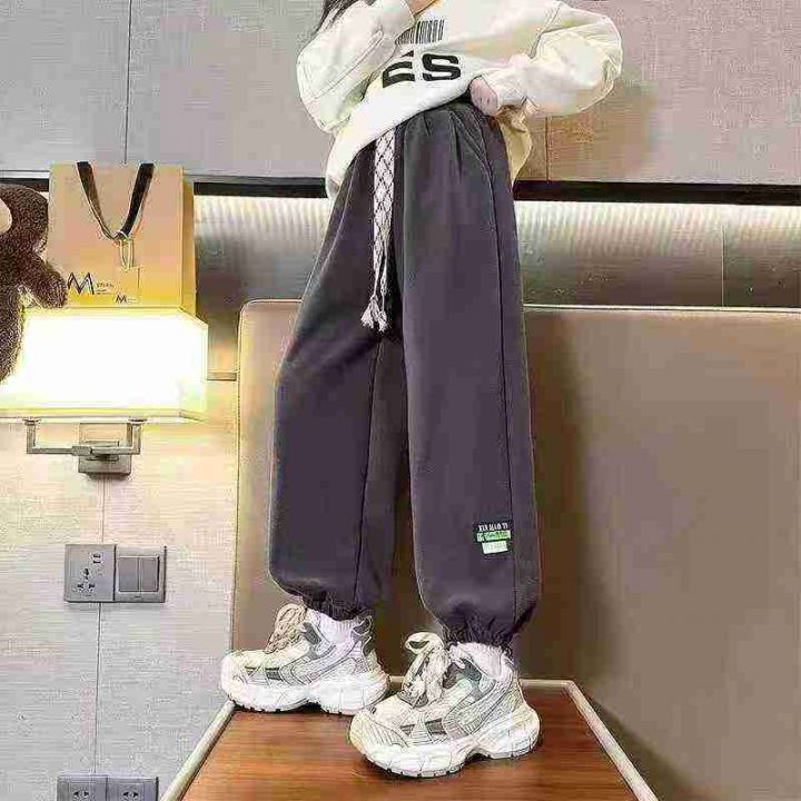 [月亮]:潮童简约时尚抽绳松紧腰束脚卫裤