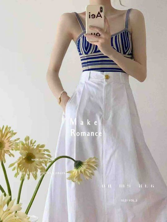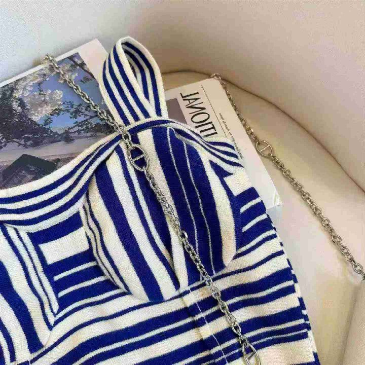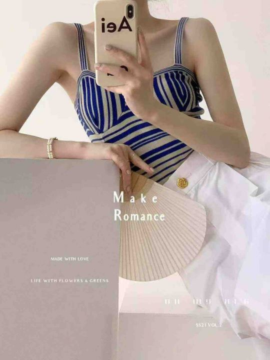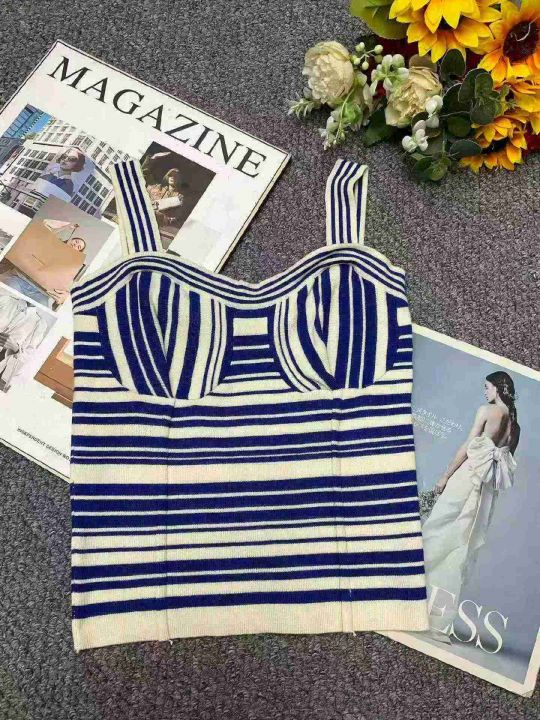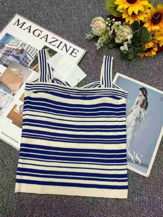 夏季新款品牌原单撞色条纹设计感小众复古气质针织吊带...