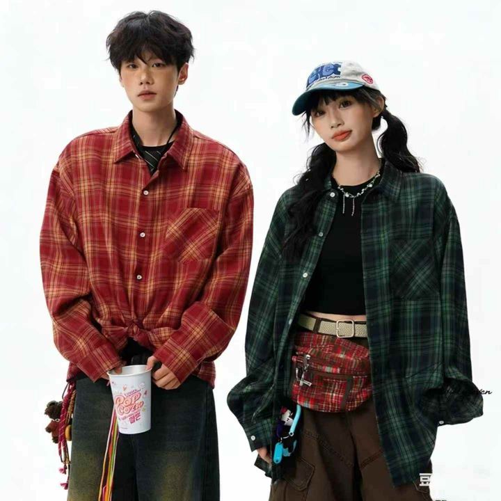 全清8.9复古polo领格子长袖衬衫外套男女2026春秋新款休闲百搭衬衣 码数XS-3...