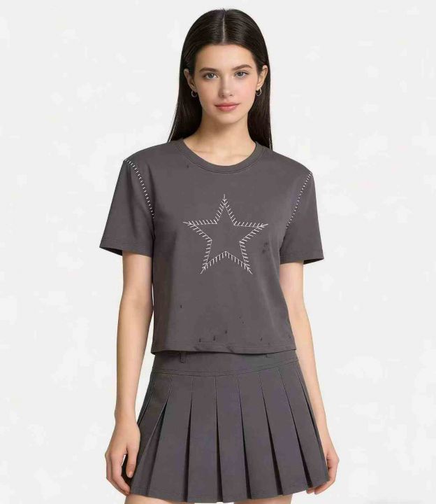 时尚洋气修身显瘦短款辣妹印花短袖T恤,图片款,品质好,工厂原单,5件一包