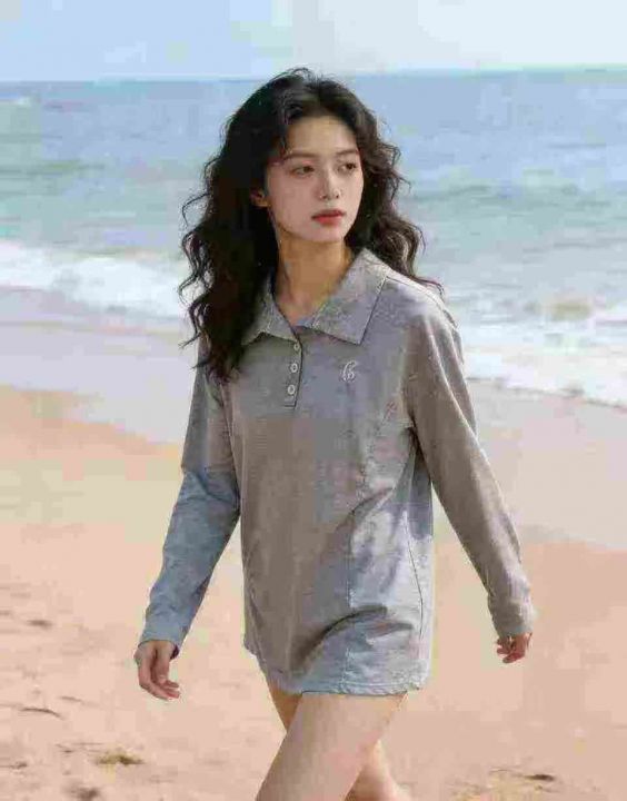 春秋新款洋气减龄百搭翻领POLO上衣简约设计感纯色长袖t恤衫,数量1740件,码数s-2xl,独立包装,全清4.8元