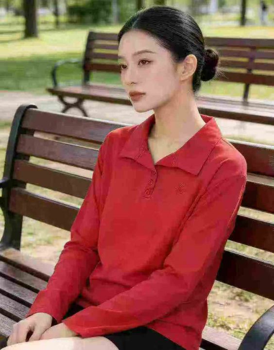 春秋新款洋气减龄百搭翻领POLO上衣简约设计感纯色长袖...