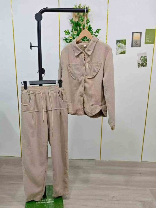 冬季加绒加厚时尚套装女新款女士减龄灯芯绒外套妈妈装高档两件套