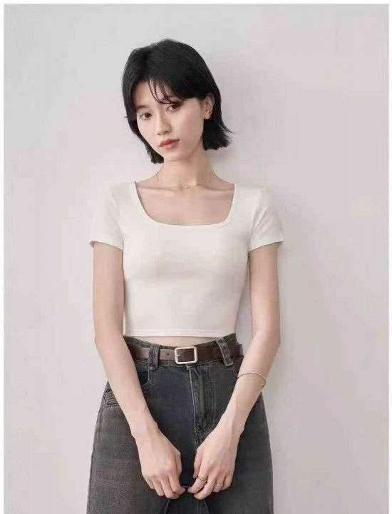 5000多件女款法式方领高腰露脐短T,尺码:XS~XL,面...