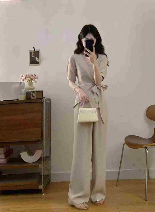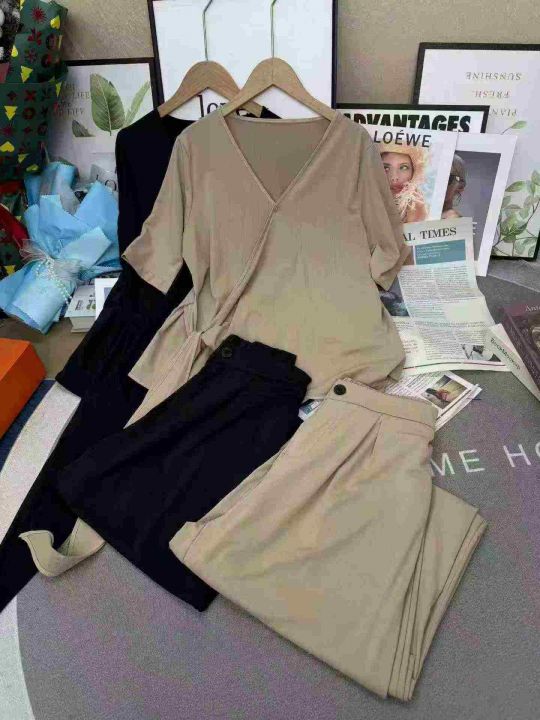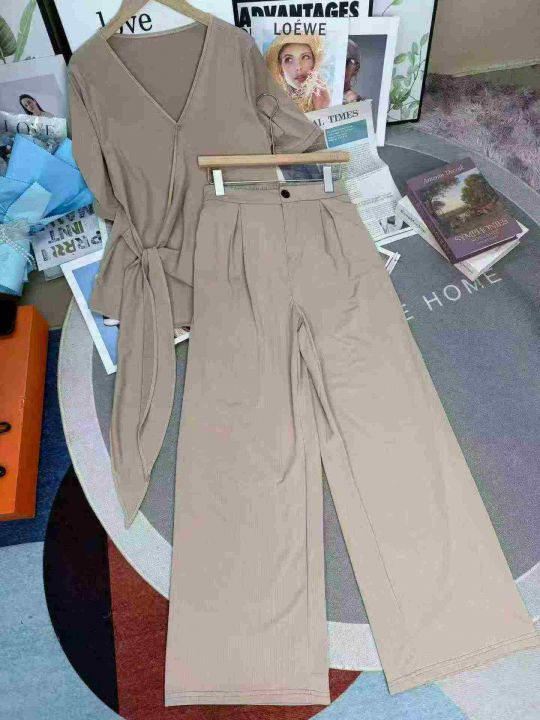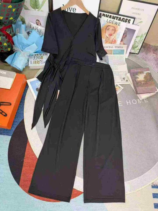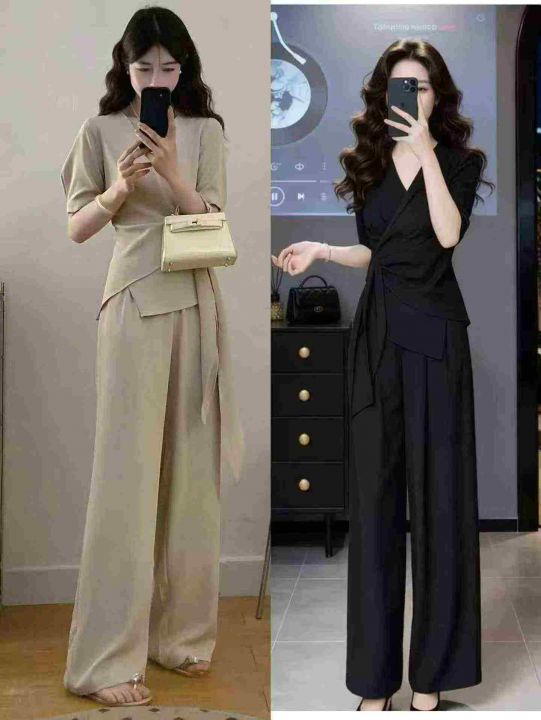 超火巨好看大码高级感气质减龄高腰阔腿裤两件套装,整...