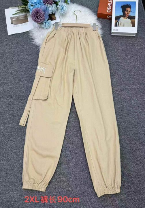 工装裤女束脚九分潮牌 bf风 中性 复古 街头裤子 M-2XL 数量:376条 独立包装 大货杏色为主,(329#59)