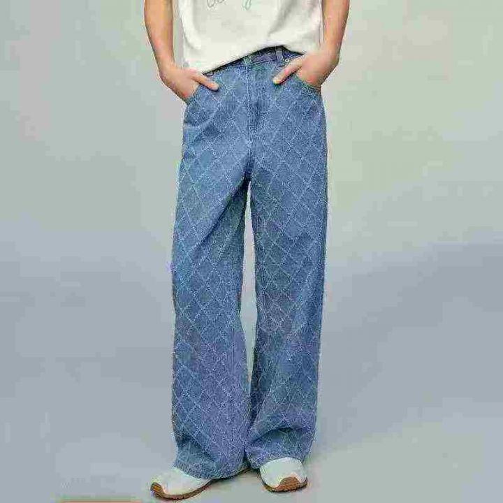 新款菱格设计感高腰牛仔裤女宽松显瘦百搭直筒阔腿长裤,独立包装,S -xL码...