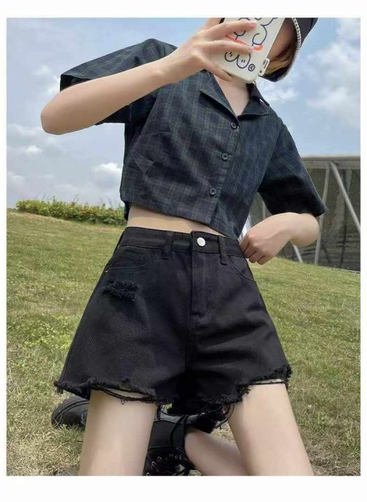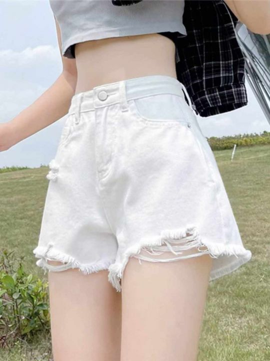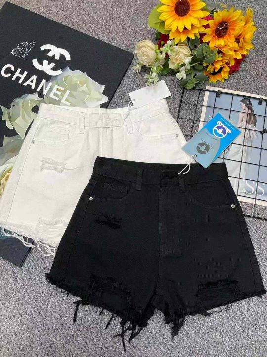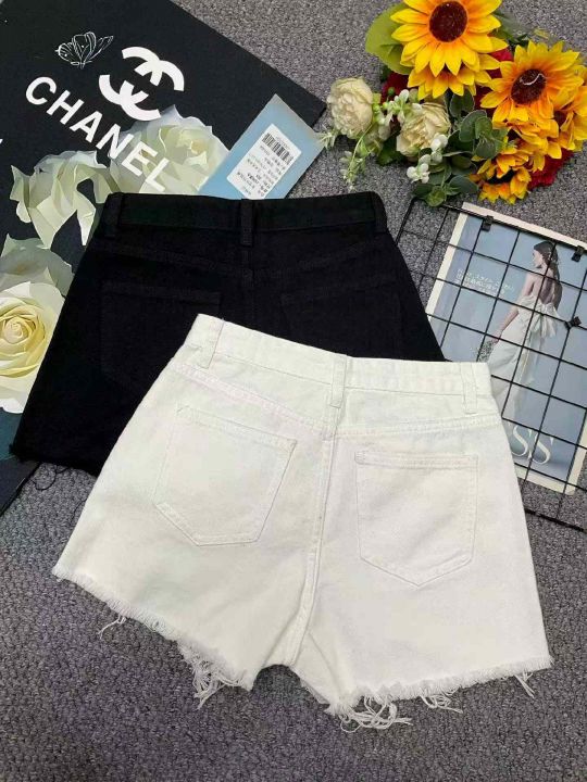夏季新款品牌原单洗水棉复古破洞设计款毛边牛仔短裤,...