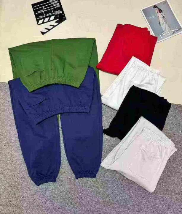 超高品质380克重磅纯棉毛圈纯色卫裤休闲裤,整款六色,后面侧面都有口袋,腰部橡筋有抽绳,束脚和阔腿比例各半,大厂货,做工精致完美,原本做大牌贴牌的货,数量1086条左右,码数S-3XL,男女同款,5条一包,有清单,不分货!