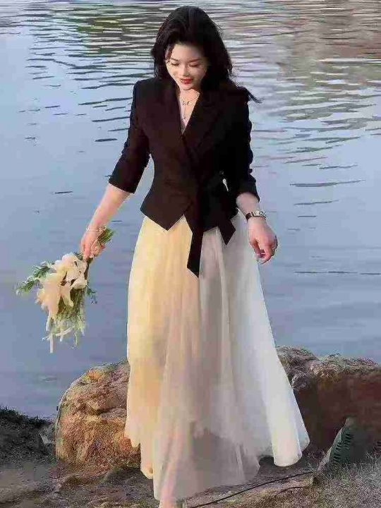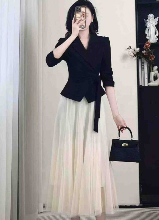 西装外套➕网纱半身裙,