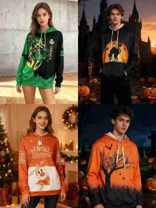 亚马逊独立站跨境外贸3D数码印花男女同款连帽卫衣,码...