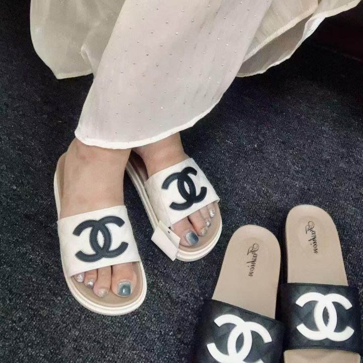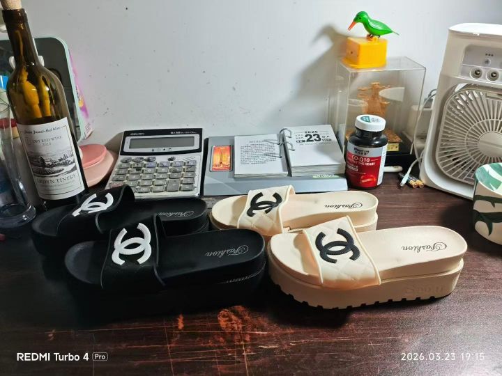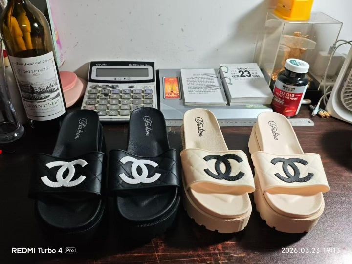 两色轻奢款大logo香风加厚拖鞋1300双,黑色/杏色,3...