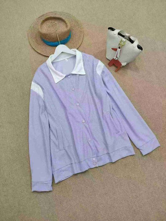 [月亮]:香芋紫棒球服华夫格撞色外套
