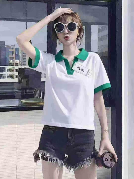 5.9元,靓妹短袖V领T恤棉质辣妹polo衫,562件,M-2XL,独立包装吊牌,全清5...