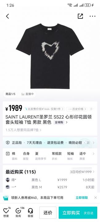 圣罗兰短袖52件有明细