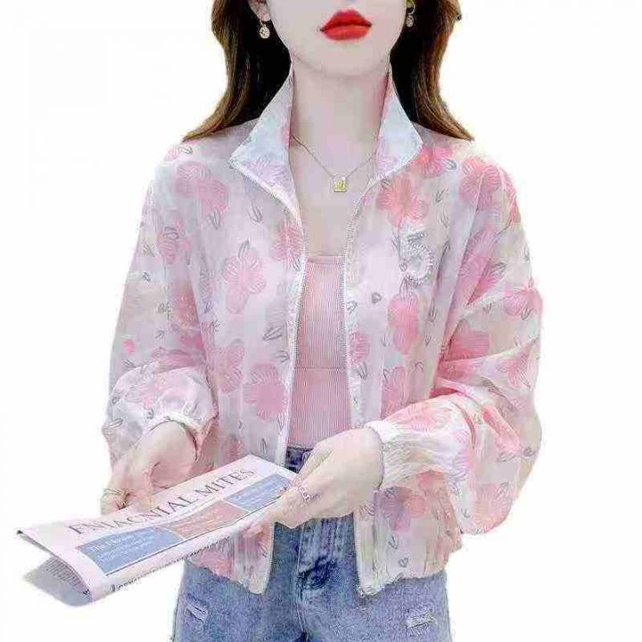 韩版休闲碎花轻薄透气重工串珠女士防晒衣.单款两个色100件s-xL独立包装全...