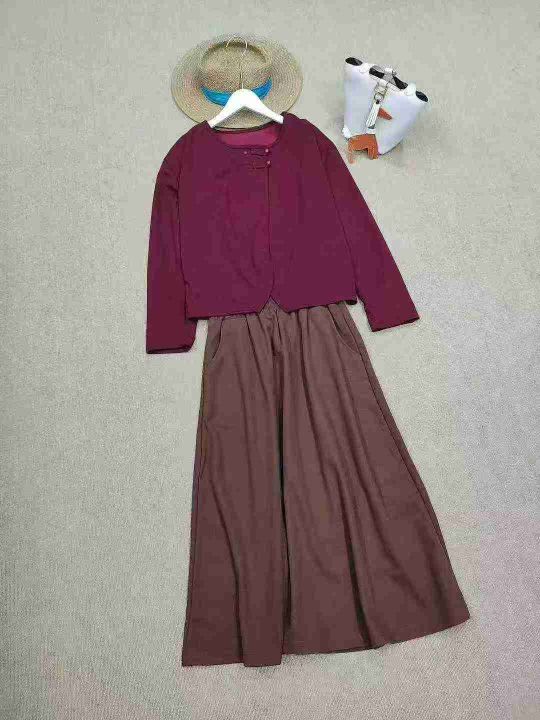 [月亮]:国风气质不规则上衣半身裙套装